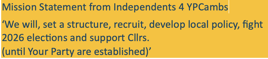 Politics in Cambs cannot wait.. Right now we need a structure to advise and support our Cllrs.. Therefore we are organising as independents to achieve this.